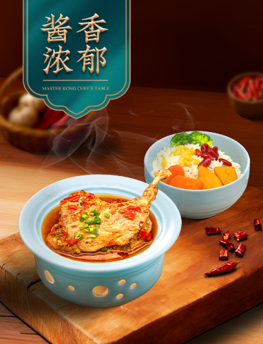 鸭全腿油润酥烂,油焖酱香融于热辣咸鲜,浓亮酱汁挂满每一粒米饭,口感丰腴,回味悠长。