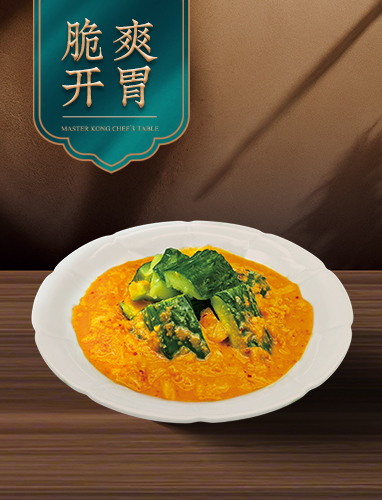 黄瓜脆嫩爽口,黄金泡菜酱香浓郁,入口咸鲜清甜,开胃解腻。